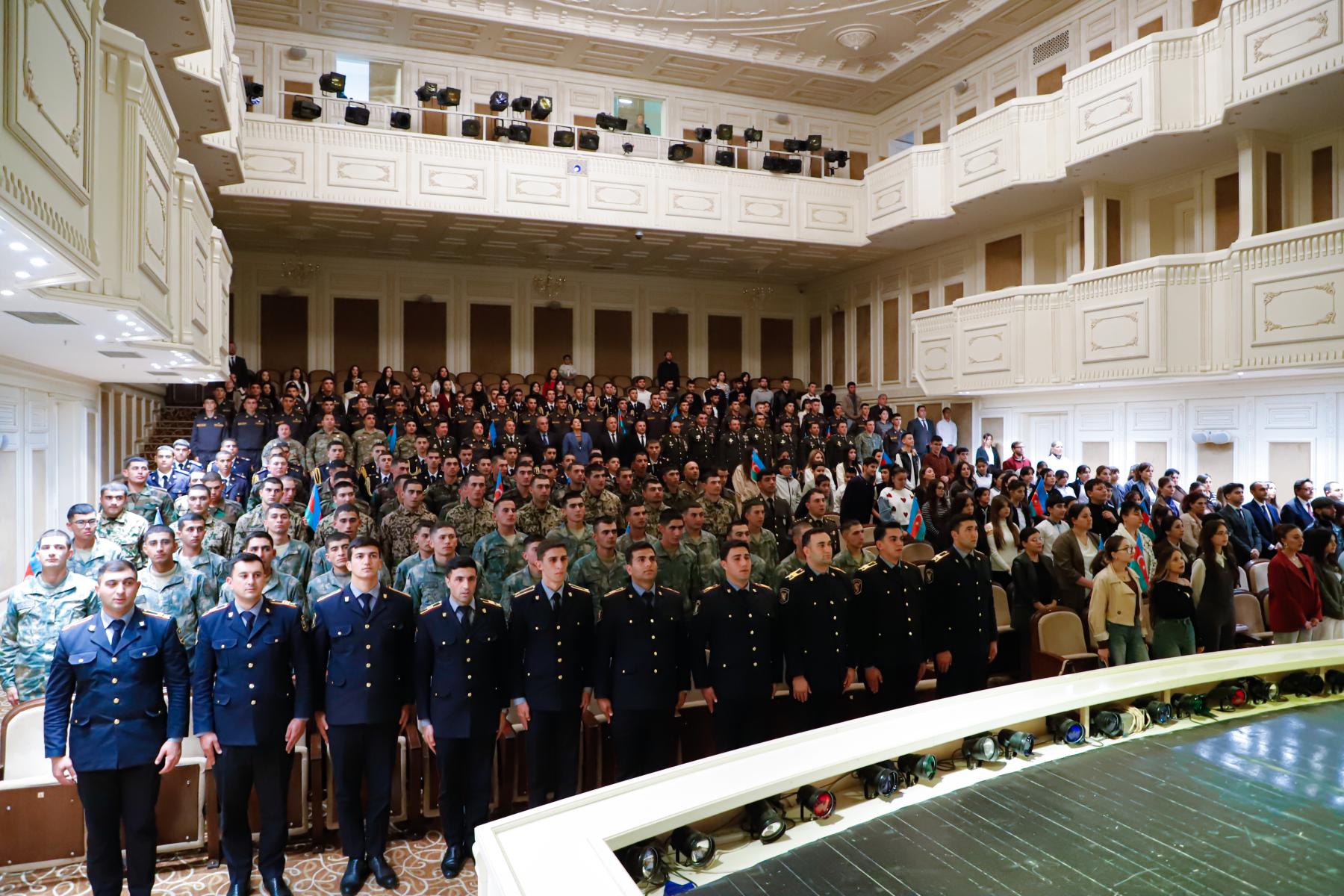 Tədbirdə Vətən müharibəsi iştirakçıları, əsgər və zabitlər, gənclər və ictimaiyyət nümayəndələri iştirak ediblər. Əvvəlcə Ümummilli lider Heydər Əliyevin və şəhidlərimizin xatirəsi bir dəqiqəlik sükutla yad olunub, Dövlət Himni səsləndirilib.