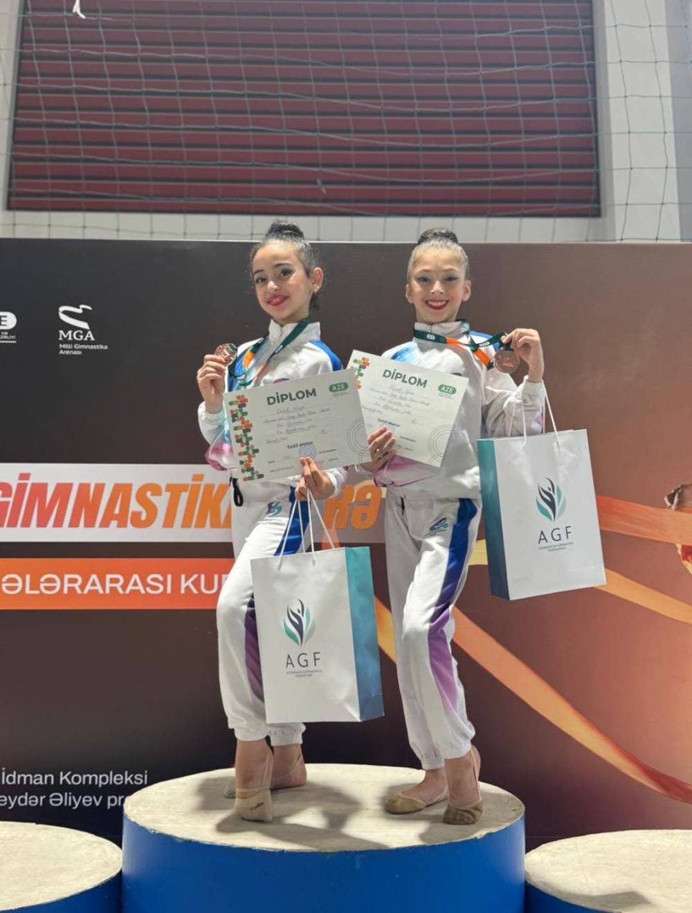 Naxçıvan gimnastları kubok yarışının medalçıları sırasında -